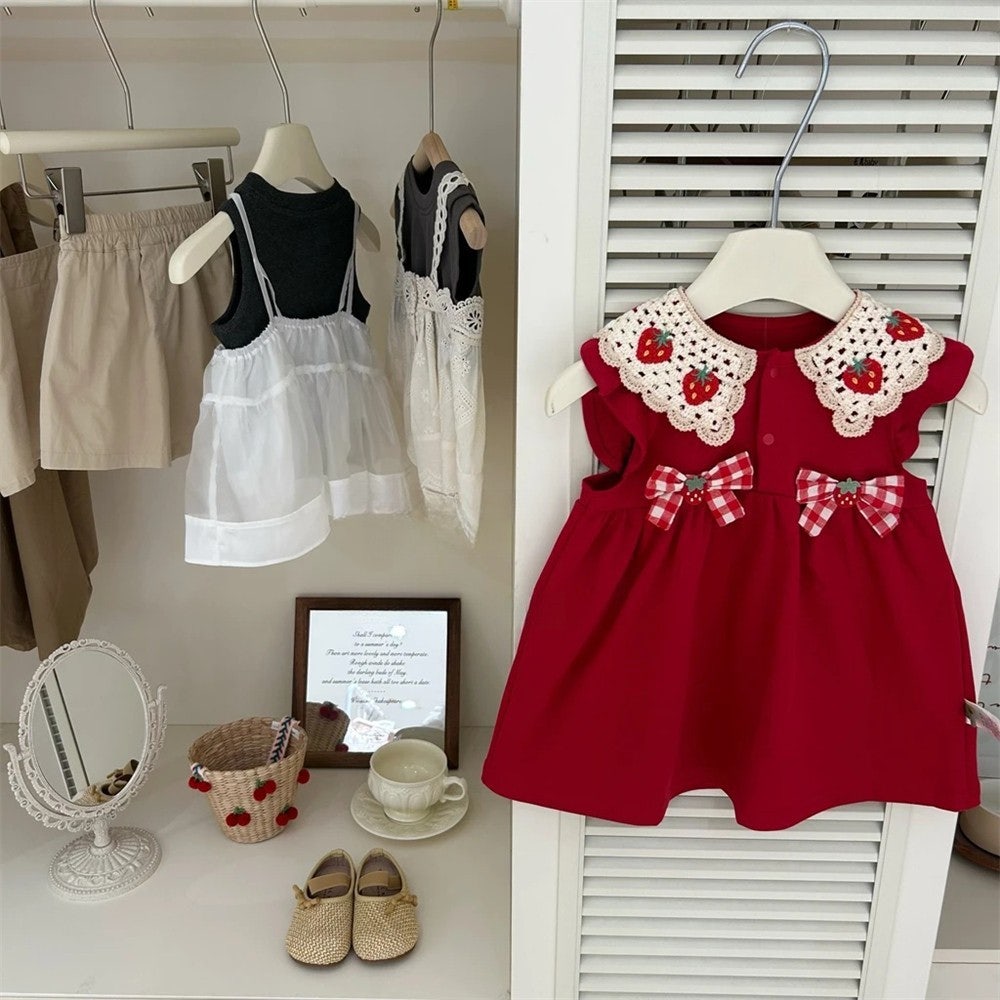 - [수입] 딸기뜨개카라원피스 (바로배송)