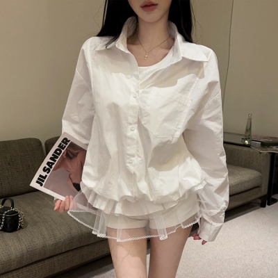 - on.[ST161]나시레이어드망사밑단셔츠