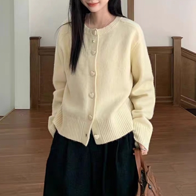 on.[CD495]하트버튼울가디건