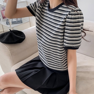 - on.[BL666]리본핀턱크롭블라우스
