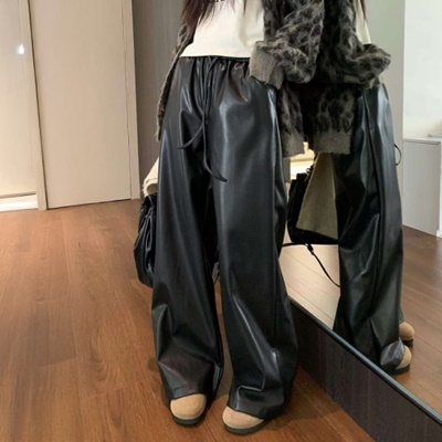 gc.[DE872]초코레더밴딩와이드팬츠