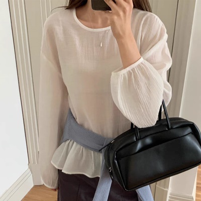 on.[BL616]셔링시스루블라우스