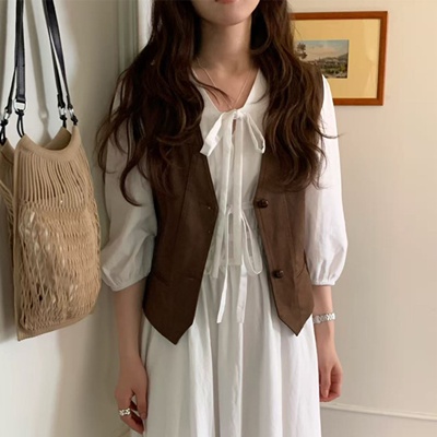 on.[VT114]스웨이드버튼조끼