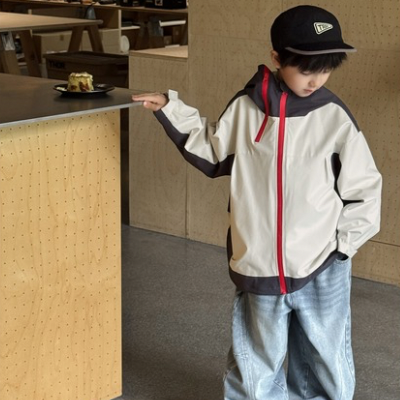 배색후드레드지퍼자켓 / 수입