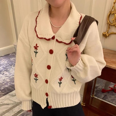 on.[CD577]플라워카라넥가디건