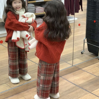 레드니트도톰체크바지셋 / 수입