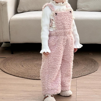 비다이어리.핑크양털뽀글이멜빵바지